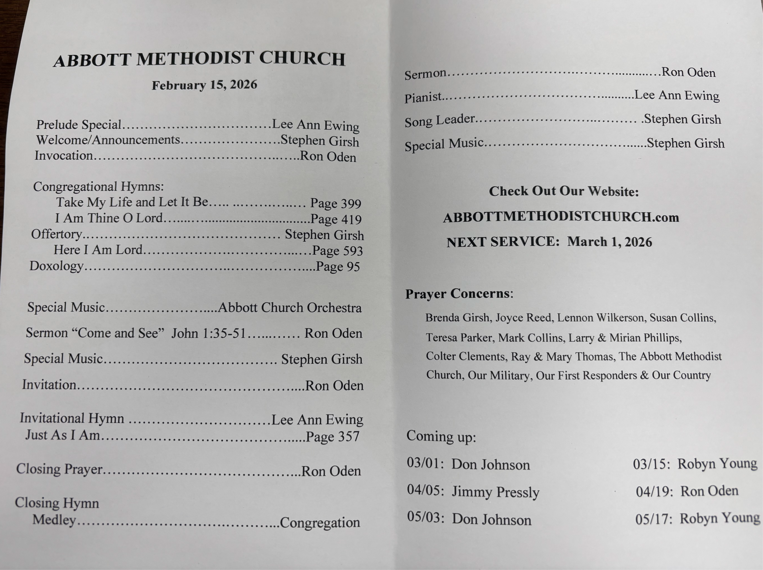 February 15, 2026 Mar 4 Written By Pastor Stephen L Girsh Sr February 15, 2026 Pastor Stephen L Girsh Sr https://abbottmethodistchurch.com